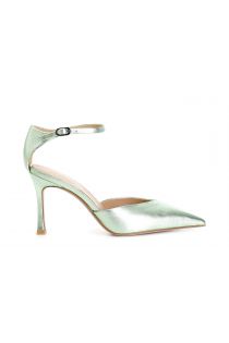 laminated leather décolleté with ankle strap mint