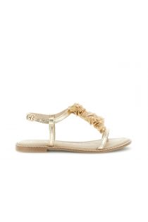 laminated leather flip-flop sandals with raffia accessory light gold