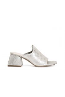 Laminated suede slipper. the insole is in leather. shoe that can be worn all day thanks to the 6.3 cm high wide-based heel and the comfortable support base.