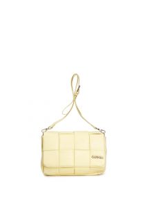 Large clutch bag with flap enhanced by a large lightly padded weave. the handle makes it wearable over the shoulder.