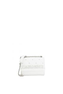 Shoulder bag with mirror material details maxi logo and stitching. flap closure. double shoulder strap.