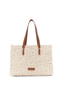 large macramé shopping bag with leather-effect handles ecru