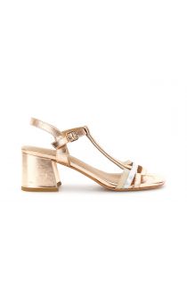Elegant and luminous sandals crafted from genuine leather with a multicolored metallic finish. they feature an ankle strap with an adjustable buckle a t-bar design on the front and a 6.6 cm mid-heel for stability and comfort. leather insole. perfect for completing refined summer looks from day to night.