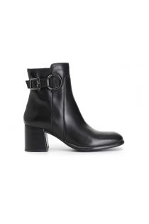 Leather ankle boot with side buckle and decorative ring. 60mm heel and leather insole. ideal in combination with multiple looks from morning to evening.