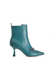 Women's leather ankle boot. a shoe with retro charm thanks to the details: a slender shape a horsebit and a fringe on the upper. 80 mm heel.