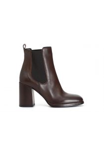 Women's leather ankle boot. elastic on both sides makes it super easy to put on. 85mm squared heel. leather insole.
