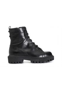 Women's leather ankle boot with laces embellished with ultra-shiny rhinestones. the insole is leather. the lug sole made of extra-light material enhances the design and gives it an ultra-modern look.