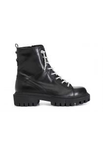 Women's leather ankle boot with laces embellished with ultra-shiny rhinestones. the insole is leather. the lug sole made of extra-light material enhances the design and gives it an ultra-modern look.