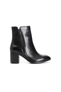 Women's leather ankle boot with side zip that makes them easier to put on. the heel is 65mm. comfortable leather insole.