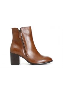 leather ankle boot with zipper cognac