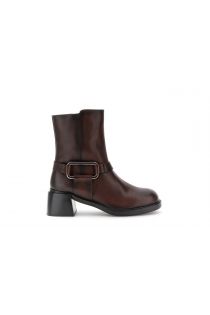 Black leather ankle boots with a decorative side clip. Comfortable and contemporary design. A 6 cm chunky heel. Perfect for urban chic looks with character.