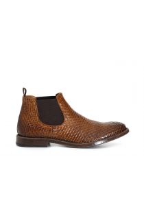 Woven leather ankle boot with elastics.