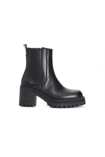Leather ankle boots with concealed stretch panel. Work boot sole and 6.5 cm heel