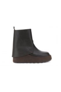 leather ankle boots with cuff and platform dark brown