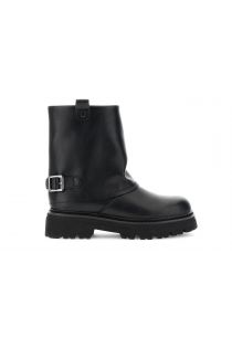 Coated leather combat boots with a cuff and side buckle. The 4 cm heel and lug sole add boldness and comfort. Ideal for a bold and confident look.