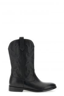Leather boots with a high-relief design on the shaft, fabric lining, and leather insole. Low 2.7 cm heel. A bold and decisive look, perfect for winter.