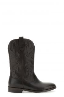Leather boots with a high-relief design on the shaft, fabric lining, and leather insole. Low 2.7 cm heel. A bold and decisive look, perfect for winter.