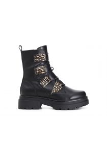Leather ankle boots with special lacing and spotted pony hair appliqués