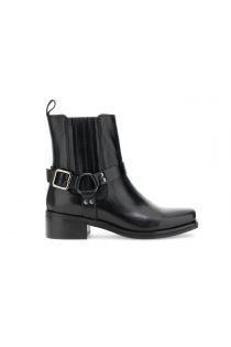 Leather ankle boots with side spurs and elastic inserts. Leather insole for superior comfort. 4.5 cm heel. Bold style and bold details.