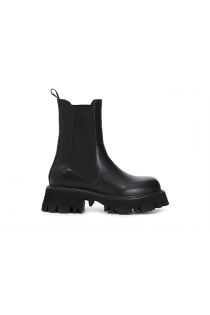 Leather ankle boots with stretch panel and decorative studs. The lug sole made of extra-light material enhances the design and gives it an ultra-modern look.
