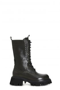 Leather ankle boots with studs, medium shaft and lacing. The lug sole made of extra-light material enhances the design and gives it an ultra-modern look.