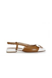 leather ballet flats with square accessory tan/white