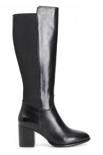 Women's boot with stretch panel at the back and side zip for easy fit. the squared heel is 65mm high. comfortable leather insole.