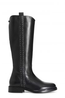 Leather boot with a cascade of side studs that give both harmony and dynamism through a pattern of stitching. the insole is leather.