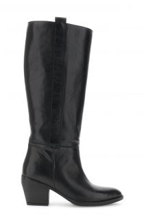 Black leather boots with a simple yet bold design and tone-on-tone details. Leather lining and insole. 7 cm block heel for a casual, contemporary elegance.