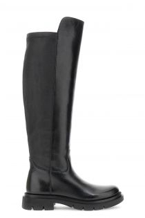 Black leather boot with a square toe, a lug sole, a leather insole, and a 3.5 cm heel. A clean design for a contemporary, urban style.