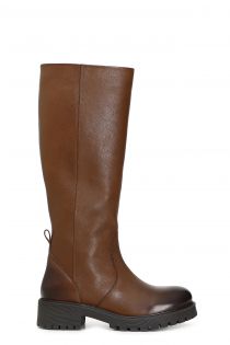 Leather boots with wide shaft. A small, handy bootstrap above the heel makes them easier to put on.
