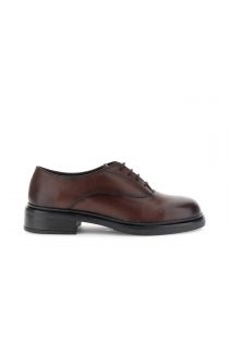 Black leather lace-up Oxfords with a glossy finish, leather insole, and 4 cm high heel. Elegance and comfort for a formal look with a simple design.