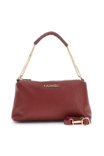 leather camera bag with chain and adjustable shoulder strap bordeaux