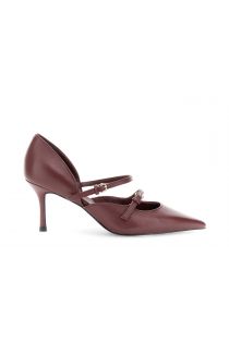 Leather pumps with double straps and a 7.5 cm thin heel. Tapered lines and gold details create an elegant, feminine silhouette with timeless appeal.