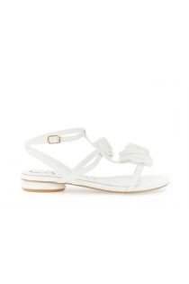 leather-effect ankle strap sandals with flower appliques off white