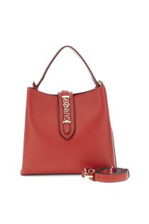 leather-effect bucket bag with covered eyelets and metal loop red