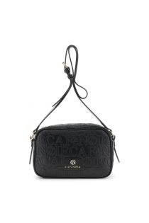 Leather-effect camera bag with embossed metal logo tag and adjustable shoulder strap. Compact and distinctive design for bold, urban looks.