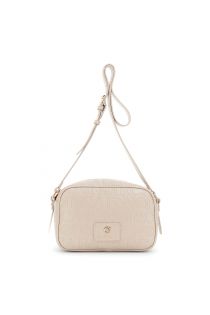 Leather-effect camera bag with embossed metal logo tag and adjustable shoulder strap. Compact and distinctive design for bold, urban looks.