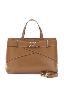 Faux leather handbag featuring an elegant metal loop and contrasting stitching. Equipped with a removable shoulder strap. Ideal for any look.