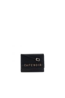Faux leather wallet with flap decorated with lettering stripes and a buckle. Internal pocket for coins.