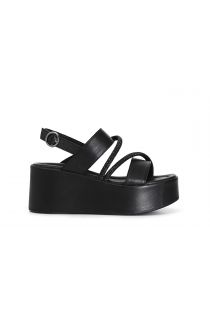 Fisherman sandals with micro-rhinestone strips on a leather-clad wedge.