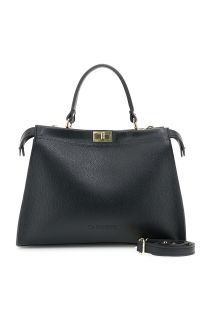 Leather handbag with double compartments and metal closures. Elegant and functional, it features a removable shoulder strap for versatile use. Ideal for any look.