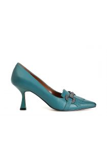 Leather court shoe. a shoe with retro charm thanks to the details: a slender shape a horsebit and a fringe on the upper. 80 mm heel.