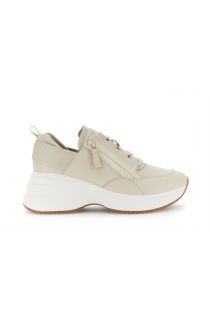 leather-lined zip-up running shoes beige