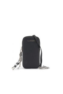 Leather-look cell phone case with black ribs zip closure with charm pull.