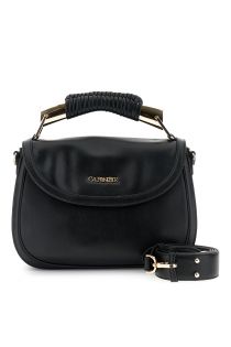 Handbag with a leather-look flap embellished with front lettering and a metal handle with a threaded insert. featuring an internal zip compartment and a removable shoulder strap it's practical and elegant for any occasion. dimensions: 27 cm (length) × 18 cm (height) × 10 cm (depth)