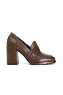 Women's leather loafer with decoration on the upper. 85mm square toe and heel. leather insole. a very versatile and chic shoe for office and leisure looks with style.