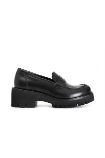 Women's leather loafer with 55 mm heel. comfortable leather insole. lug sole.