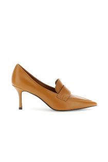 Leather moccasin-style pump with a 7.5 cm thin heel. A sleek silhouette that sculpts your gait, an essential elegance that caresses the skin and enchants every step.