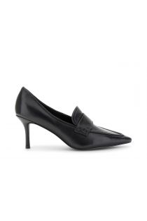 Leather moccasin-style pump with a 7.5 cm thin heel. A sleek silhouette that sculpts your gait, an essential elegance that caresses the skin and enchants every step.